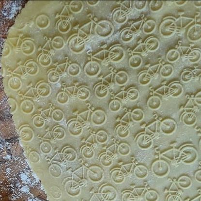 Roll out the dough, decorate it with a rolling pin and cut out the shapes you prefer.