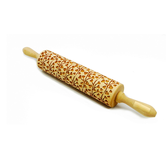 Double-handled rolling pin made of beech wood to decorate your biscuits.