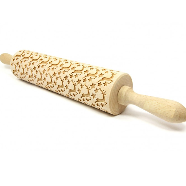 STARS AND REINDEER DECORATED ROLLING PIN 43 CM