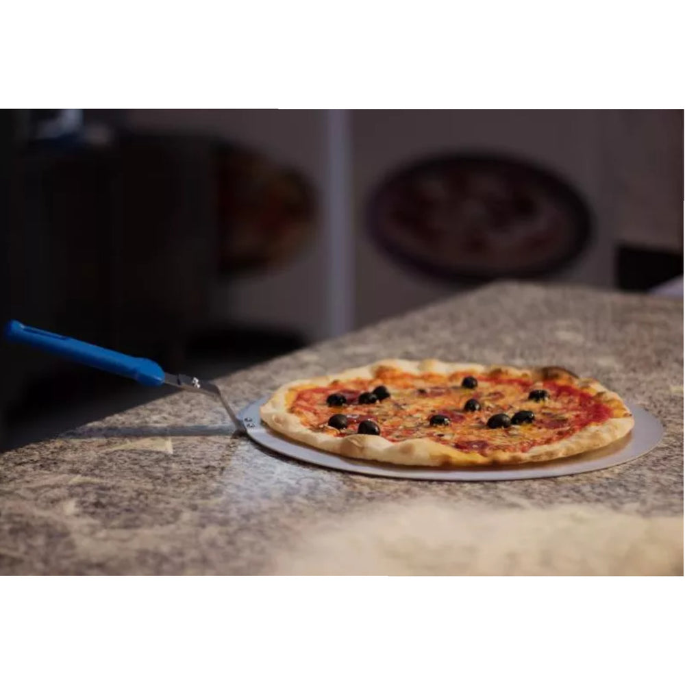- Aluminum wedge disc size Ø 45 cm. Total length with handle 65 cm. The slight grooves make cutting pizza into wedges easier and faster.