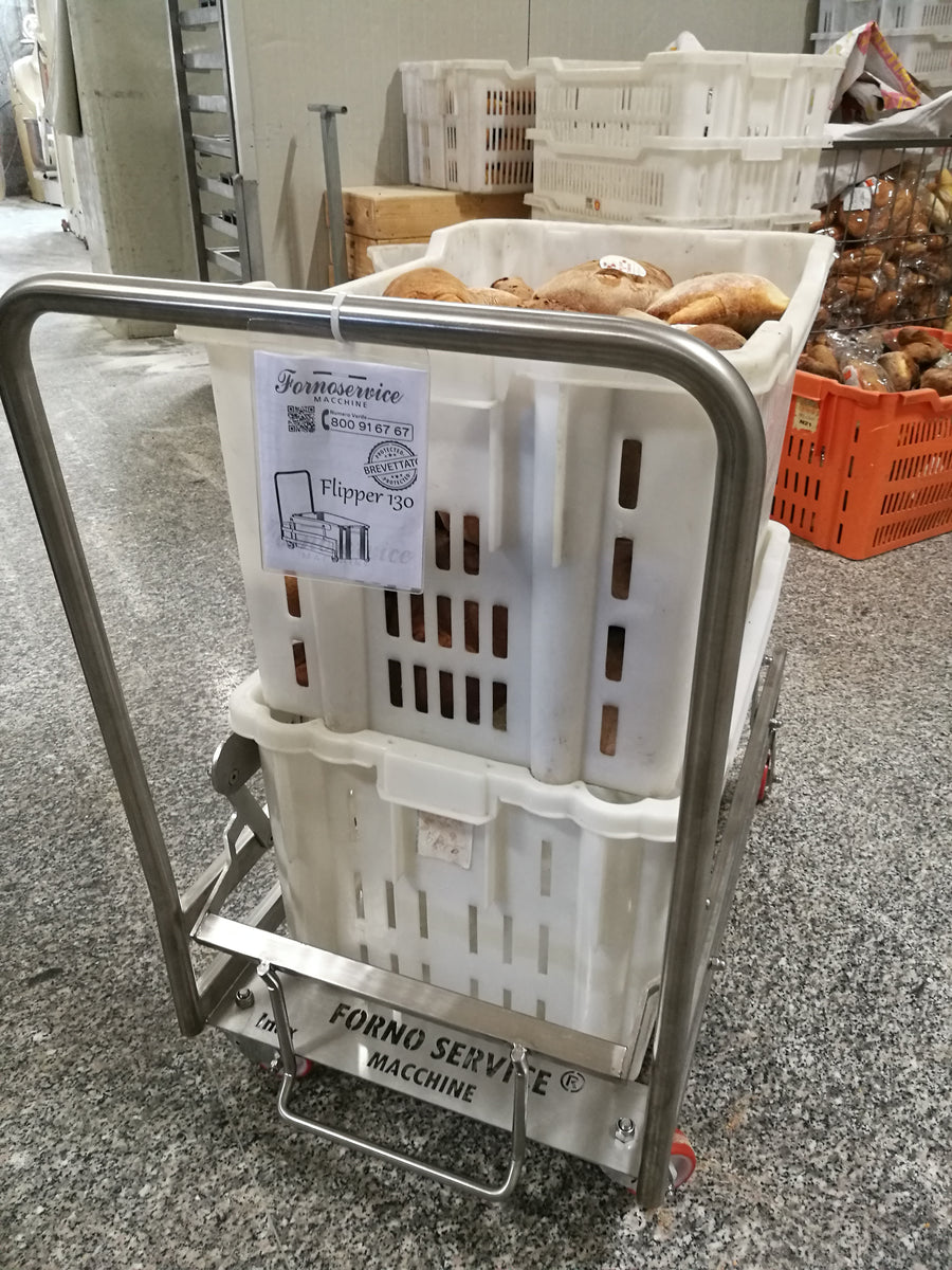 Flipper 130 is the trolley designed and patented by FornoService®, completely in stainless steel, which allows you to lift and reposition one or more stackable baskets, containing your products, without any more effort.